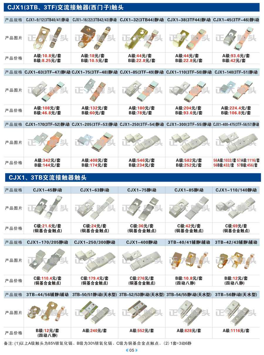 CJX1(3TB、3TF)交流接触器(西门子)触头
