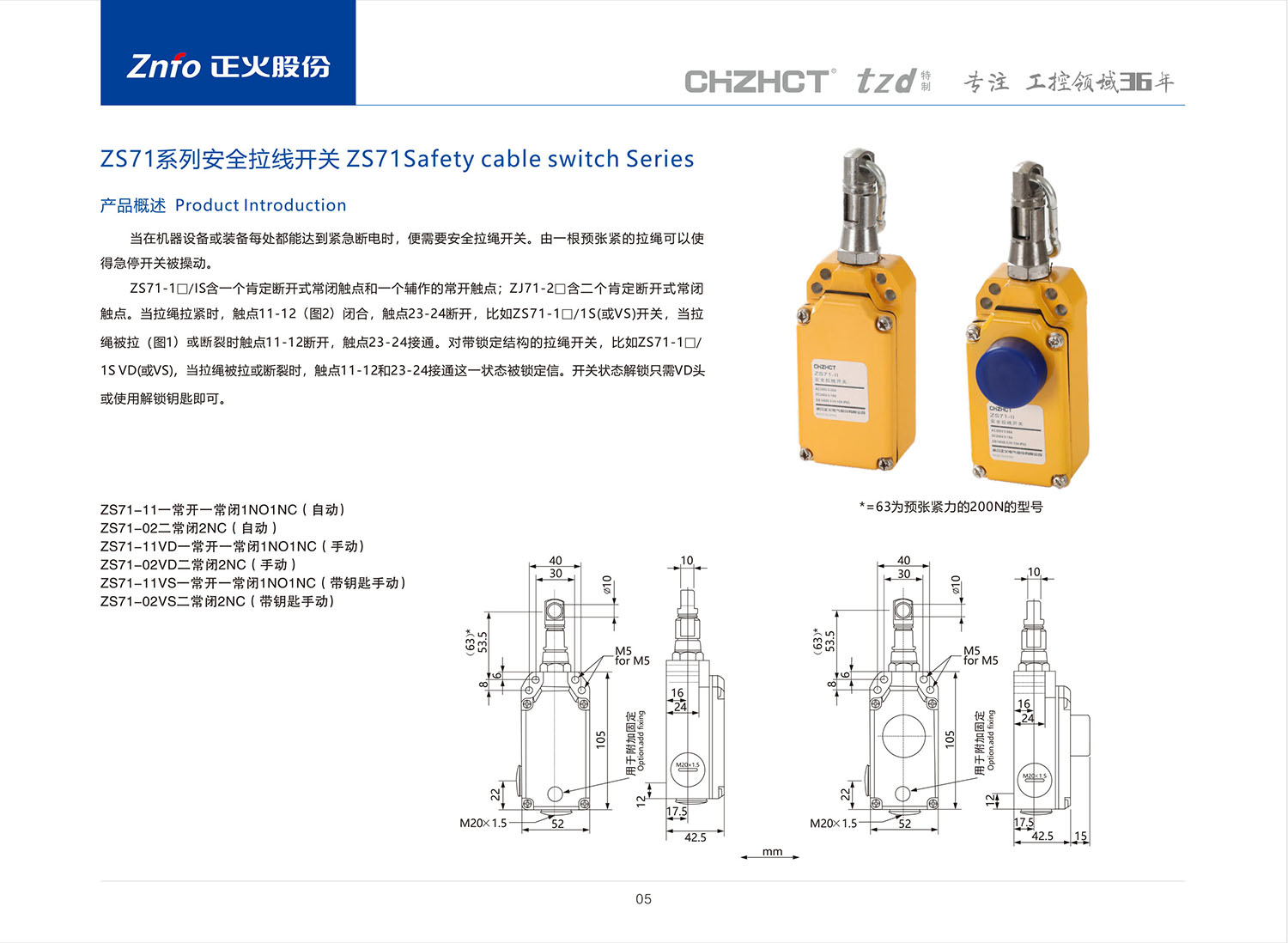 ZS71安全拉线开关_拉绳开关_行程/微动/跑偏/拉绳/超速_工业控制与保护_产品中心_huatihui电气股份有限公司