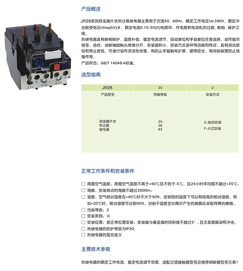 JR28系列热过载继电器产品说明书