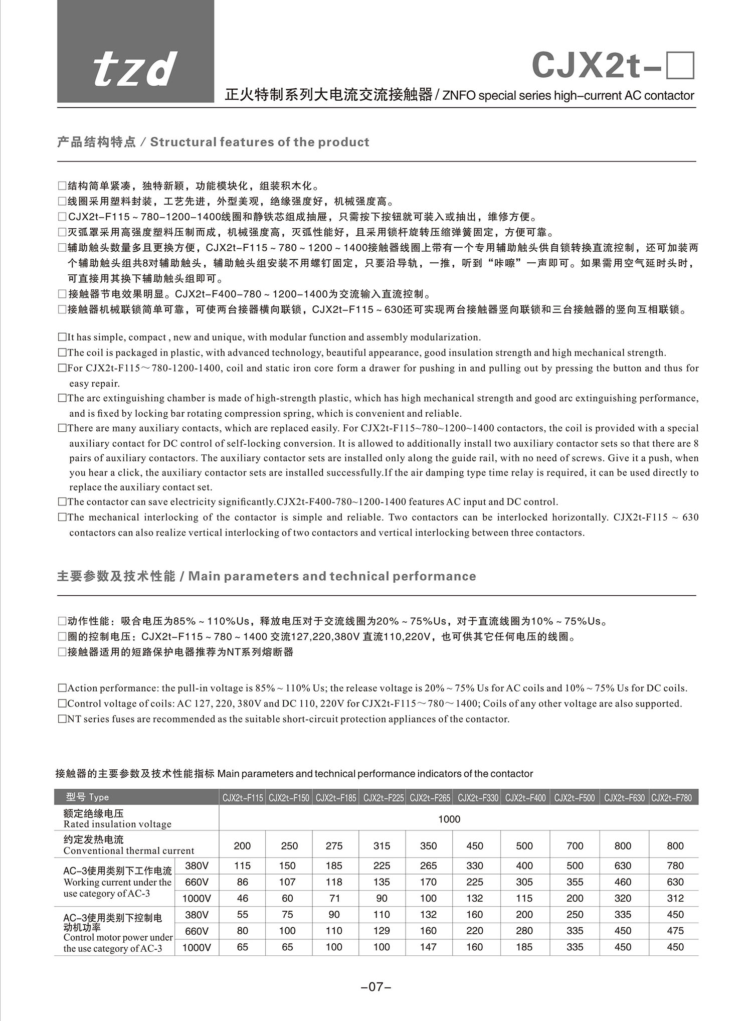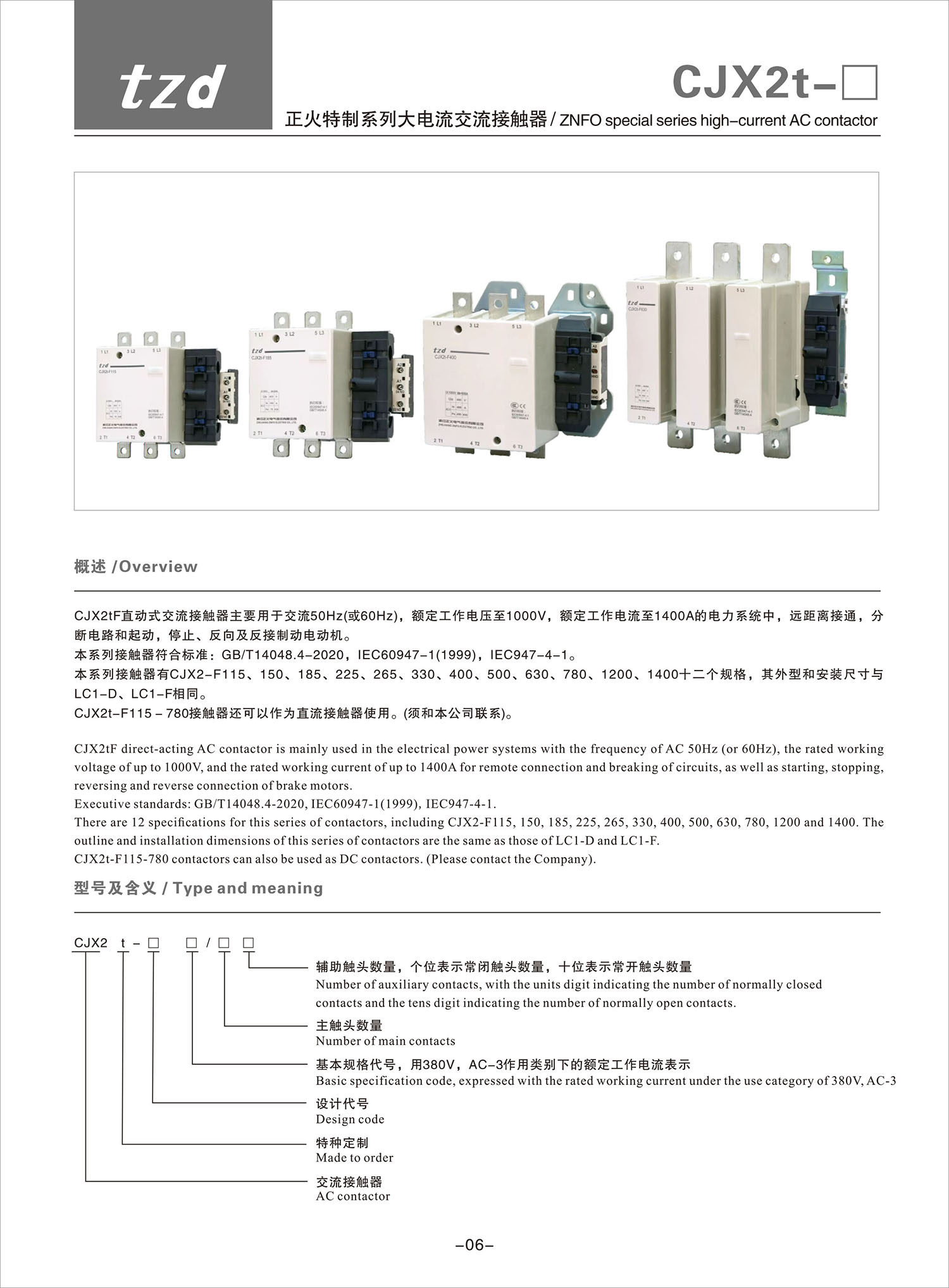 CJX2t-F huatihui特制系列大电流交流接触器产品说明书