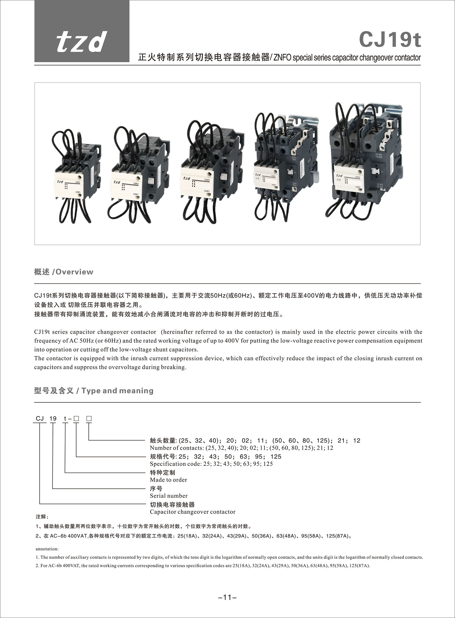 CJ19t huatihui特制系列切换电容器接触器产品说明书