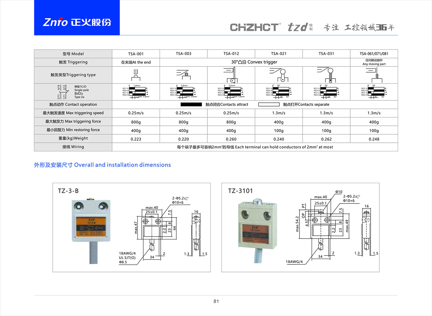 TZ-3 防水限位开关产品说明书