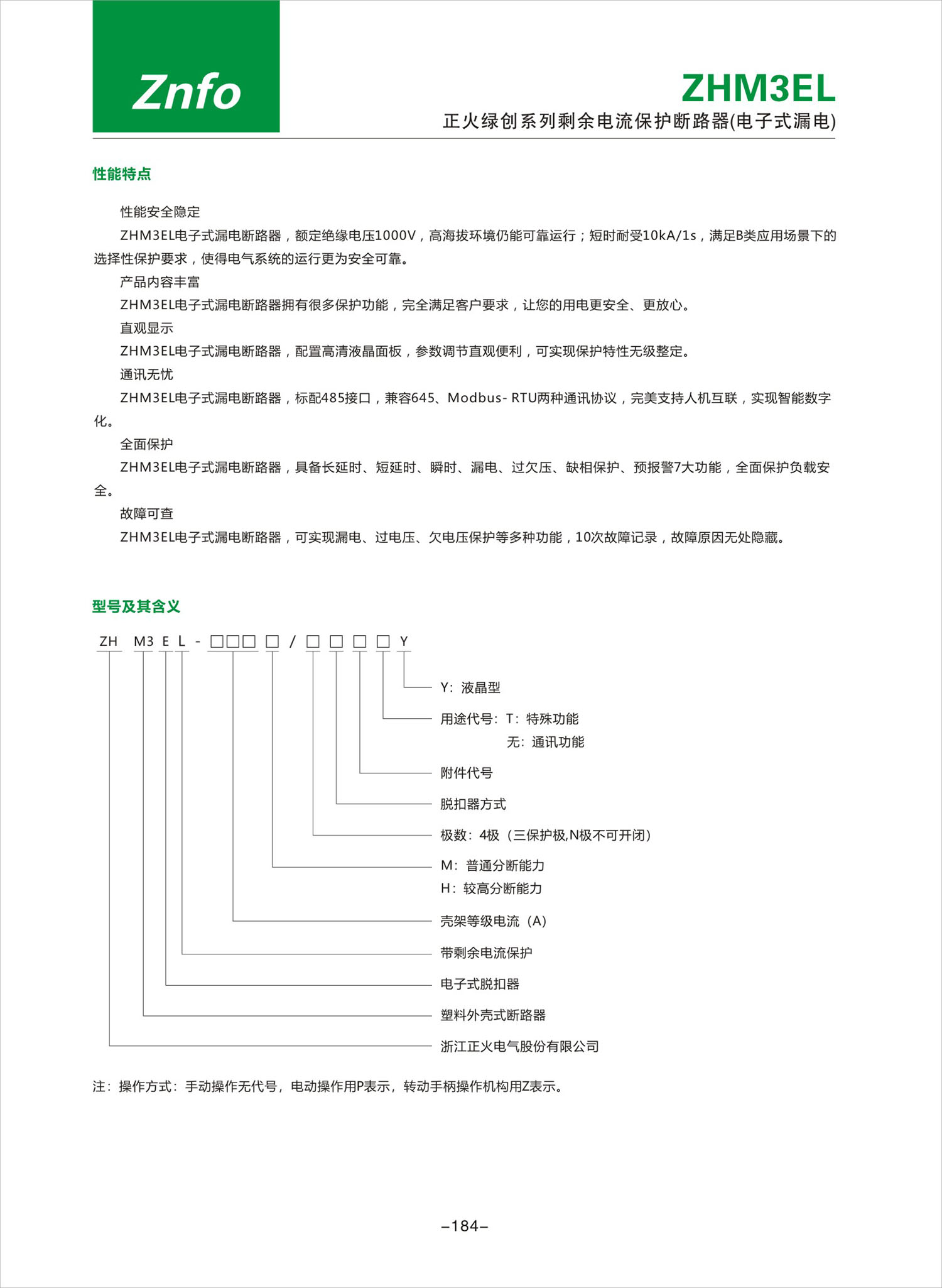 ZHM3EL系列剩余电流保护断路器(电子式漏电)产品说明书